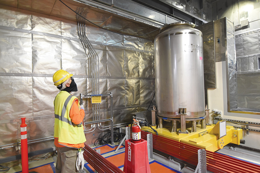 To kick off the vitrification process, tank waste must be treated for cesium and other solids. To that end, construction of the Tank-Side Cesium Removal System wrapped in 2021. It began operating in January and by early April had treated 200,000 gallons, which will eventually be sent to the vit plant to be stabilized in glass logs.