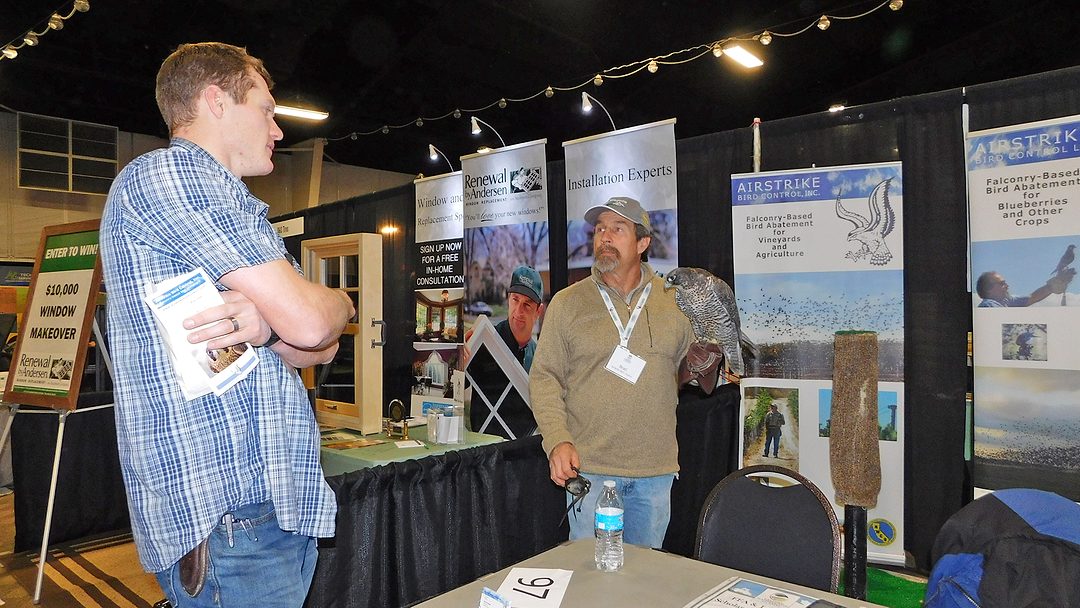 “I get that reaction a lot at shows,” said Brad Felger, gently stroking the head of his gyr falcon, Hoko. He was advertising for Airstrike Bird Control, Inc., and his passion, falconry, at the Eastern Washington Ag Expo held Jan. 5 and 6 at TRAC in Pasco.