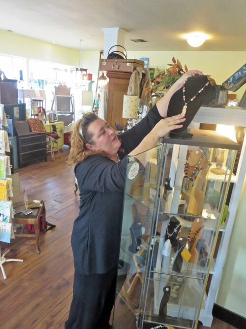 Ashby carries a wide-range of art in different mediums – ranging from jewelry pieces put together by Denise Spaman of Timeless Talismans to recycled glass sculptures created by Alice Beckstrom. She also has a gallery section filled with paintings from various local artists. Ashby said she has a pool of more than 70 artists who produce pieces for her shop.