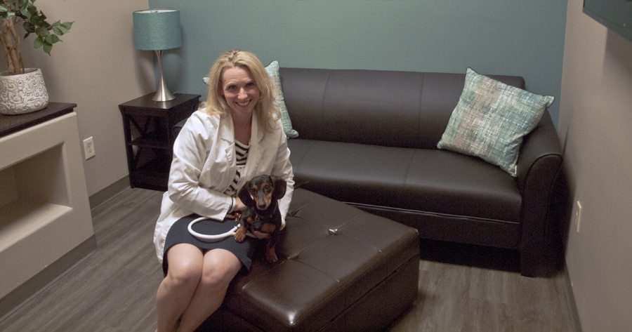 “It’s a big push in the industry right now,” she said. “Animals are so scared when they come here, so we are trying to do whatever we can to make them less scared,” which is why two of the three exam rooms look more like a living room than a doctor’s office.