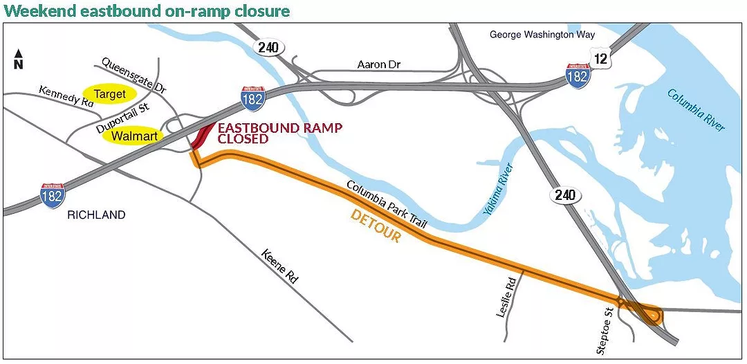 A detour will be in place directing drivers to Columbia Park Trail and then to the Highway 240 interchange at Steptoe Street.