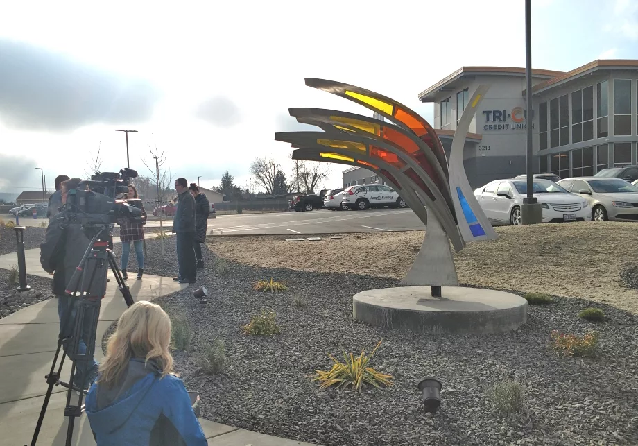 A dynamic new sculpture at the corner of 19th Avenue and Highway 395 is a Tri-City credit union’s gift to the community