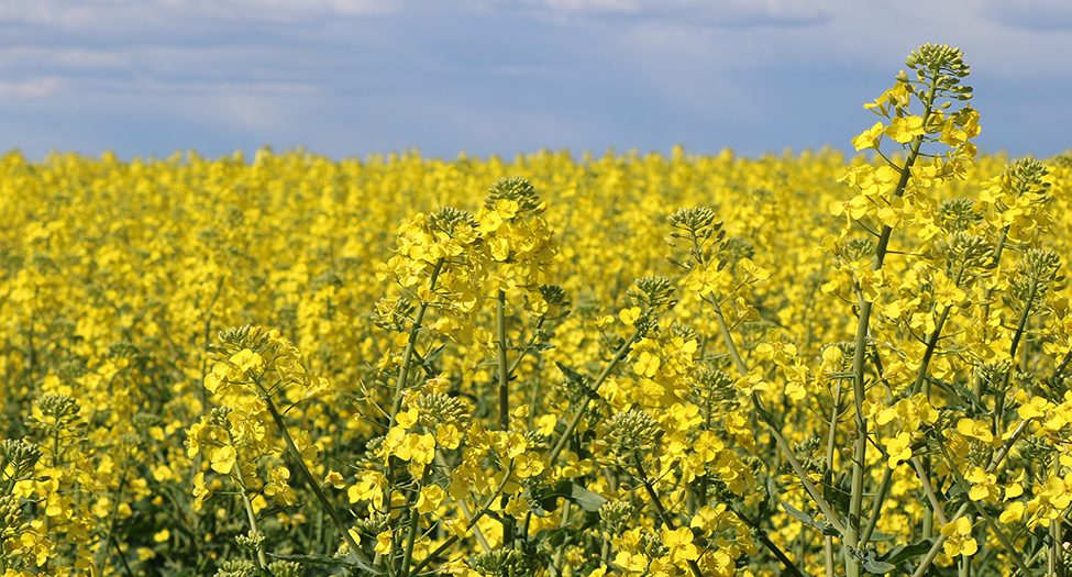 a crop rotation with canola seed, which produces a vibrant yellow flower as it