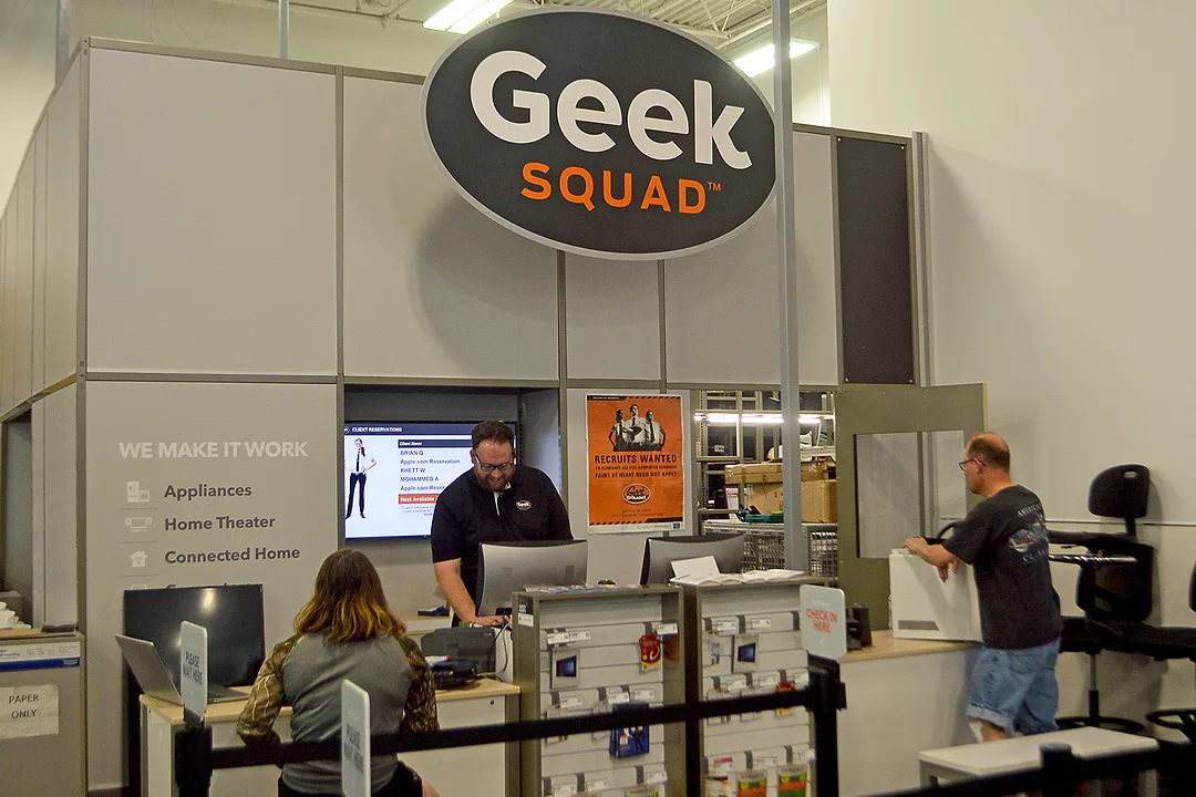 The Kennewick store now has updated flooring with carpet in the company’s signature shade of blue. There is a new “precinct” for employees who offer technical support, known as the “Geek Squad.” The remodeled area features consultation tables to meet with customers.