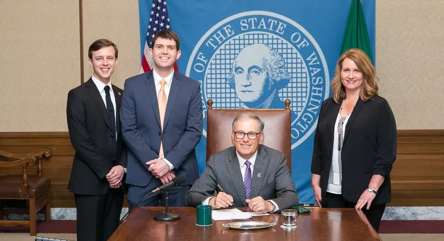 Gov. Jay Inslee signed the legislation April 1, and Lori Mattson, president and CEO of the Tri-City Regional Chamber of Commerce, was there for the occasion.