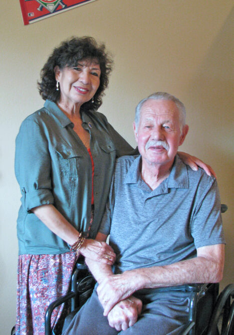 One of her more recent clients, Richard “Joe” Pettitt, can’t walk due to eight knee surgeries after having been kicked by horses during his career as a veterinarian. Sueyras recently pushed him in his wheelchair to the park.