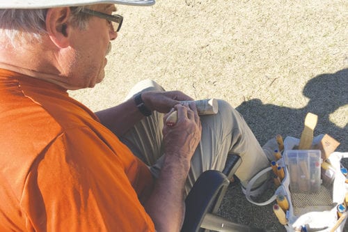 Members of the Tri-Cities Wood Carvers take care to spread out in Columbia Park in Kennewick to minimize the spread of coronavirus under Washington’s Stay Home, Stay Healthy order.