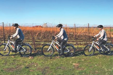 Zissermann said e-bikes give even non-cyclists a good way to explore wine country on two wheels. Heavier that traditional bikes, battery-powered motors extend the rider’s range.