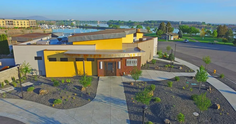 The restaurant, which overlooks the marina at Columbia Point, was designed by Terence L. Thornhill Architect Inc. P.S. in Kennewick.