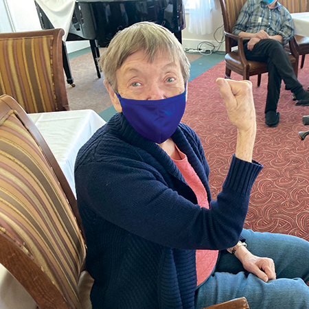 Brookdale staff wear medical face masks and face shields and maintain social distancing. They also add goggles and gloves when providing direct care.
