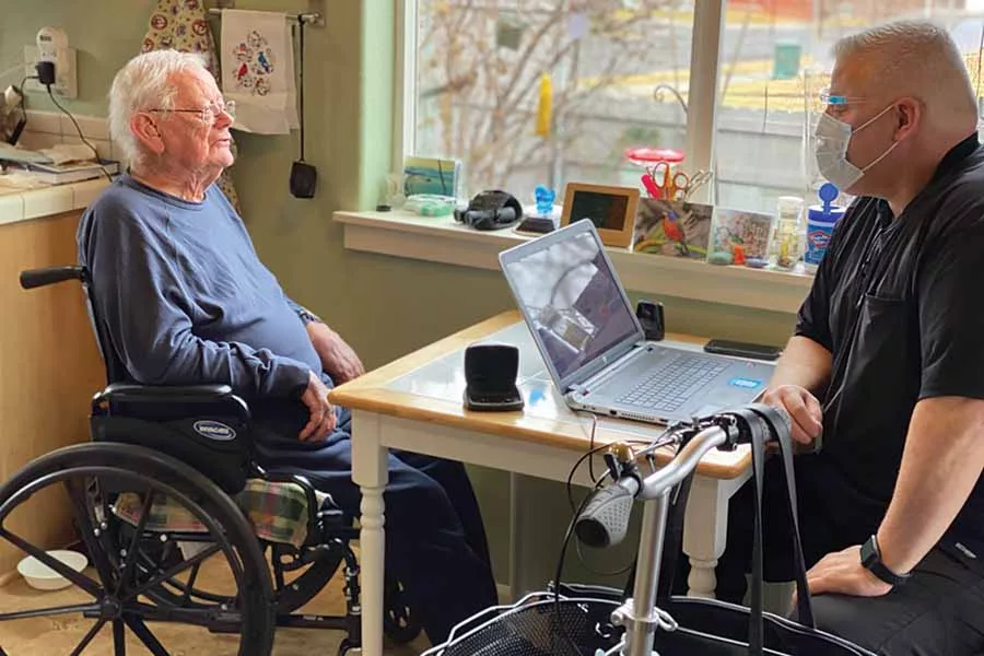 On a recent April afternoon, Neil traveled to Weston, Oregon, to visit a 104-year-old patient who is blind, immobile and has significant hearing loss. She’s been a patient for six years.