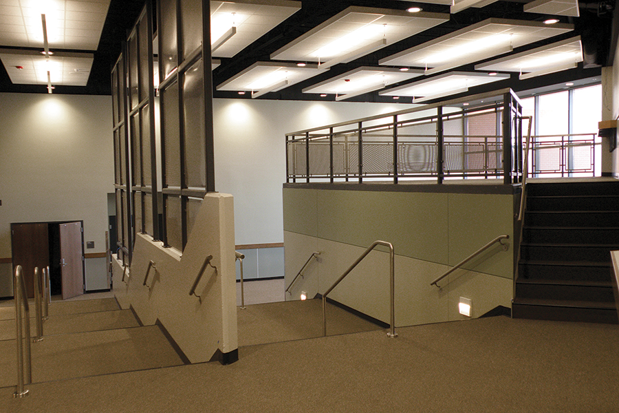 The project included new seating and aisle management, an improved stage, modernized electrical and mechanical systems, a new vestibule, additional restrooms, a new roof, new exterior guardrails and two electronic reader boards.