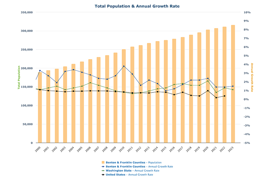 As seen in Benton-Franklin Trends data, the growth rate for the two counties was about 1.5%.