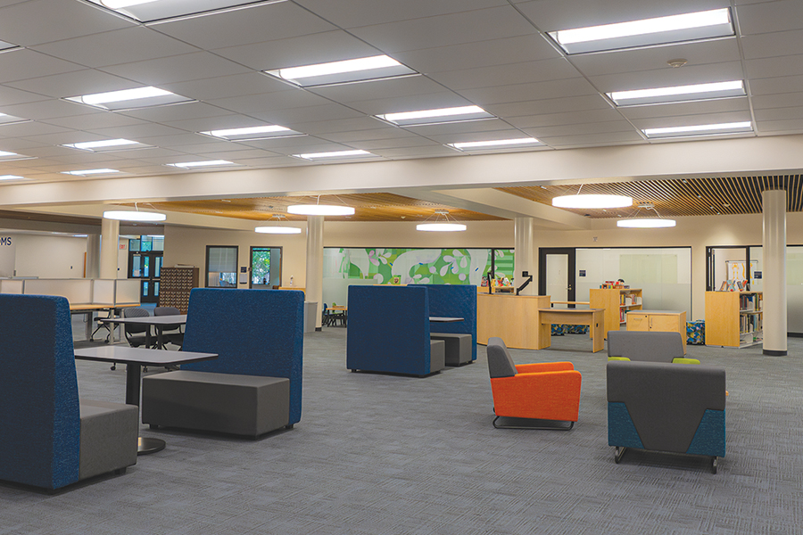 The newly remodeled library offers about 22,000 square feet of space designed to accommodate community college students’ diverse study needs.