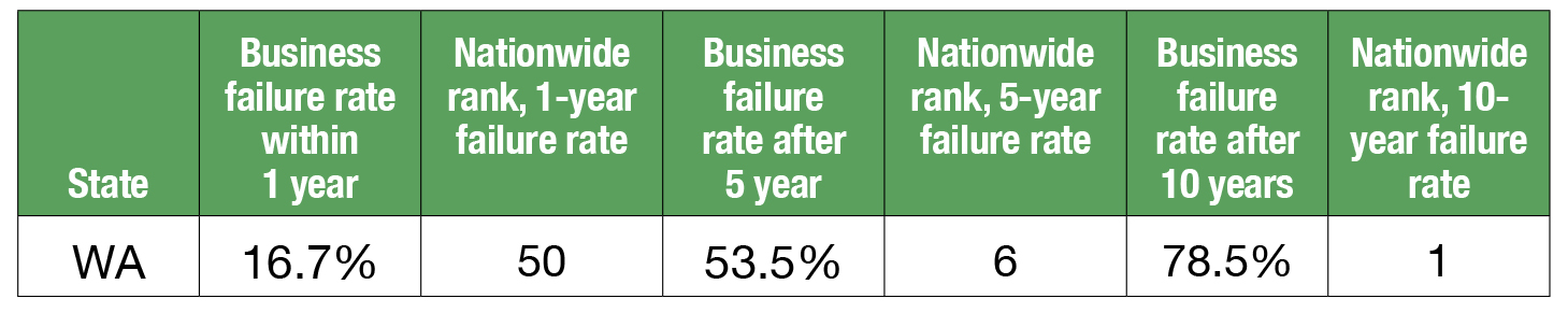 Businesses in the state of Washington have the second-lowest failure rate within the first year, with about 17% failing, according to the report.