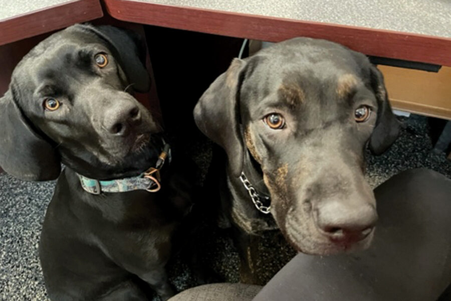 Josie and Ryder are the Mastadors who “work” daily at Kennewick’s Minuteman Press in Kennewick. (Courtesy Minutemen Press)