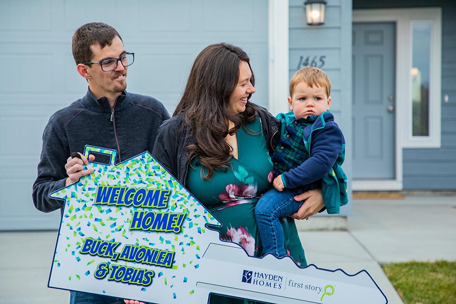 Courtesy First StoryAvonlea and William “Buck” Ide, along with their young son, beamed as they received the keys to their new Benton City home.