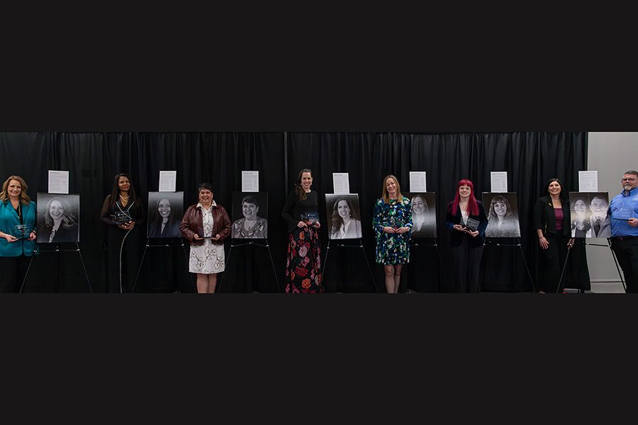 2025 Women of Distinction Award Winners, from left: Lori Mattson, Chauné Fitzgerald, Michelle Smith, Jillian Cadwell, Courtney Flatt, Kalimae Mountain, Amanda Lorraine and Devin Lorraine.