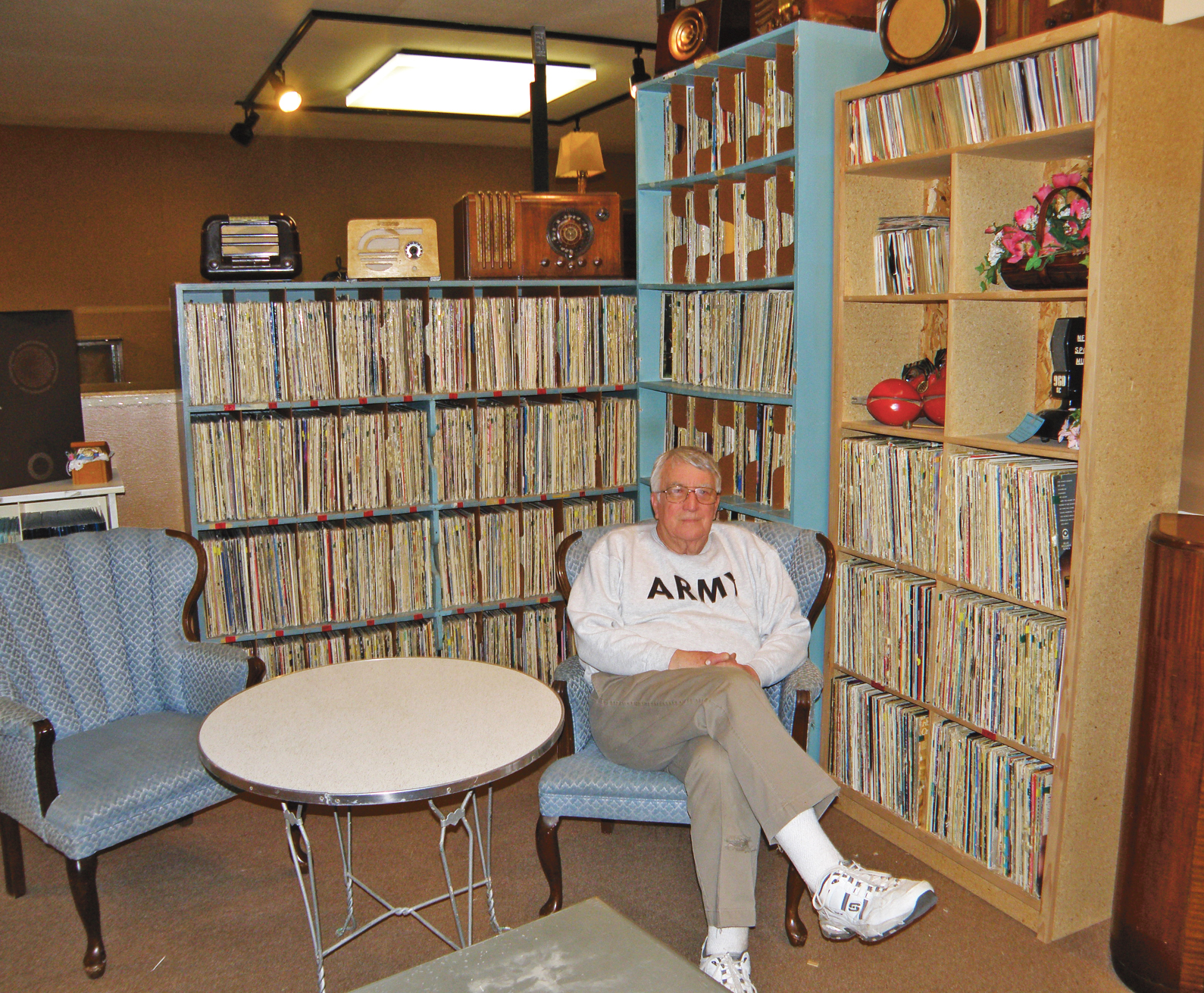 Visitors can choose a vinyl record from the large collection donated by KONA radio, place it on a working turntable and listen to it in the radio lounge area.