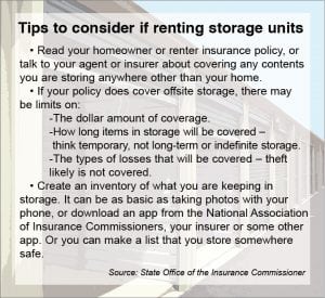 Policies that cover items at off-site storage units may have limits in place as well, according to the state Office of the Insurance Commissioner.