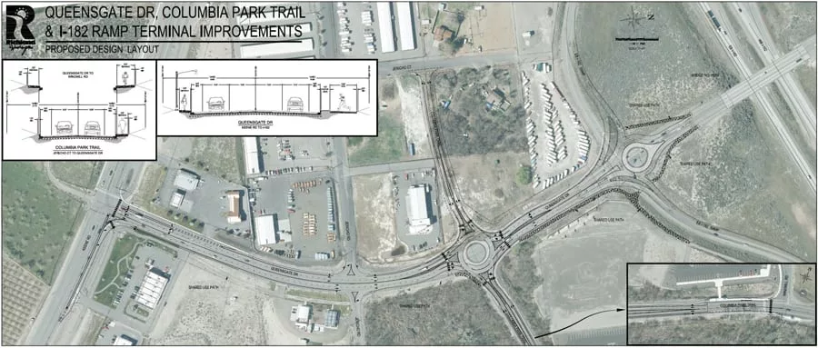 Two projects are planned: adding an Interstate 182 ramp roundabout and Queensgate Drive-Columbia Park Trail improvements.