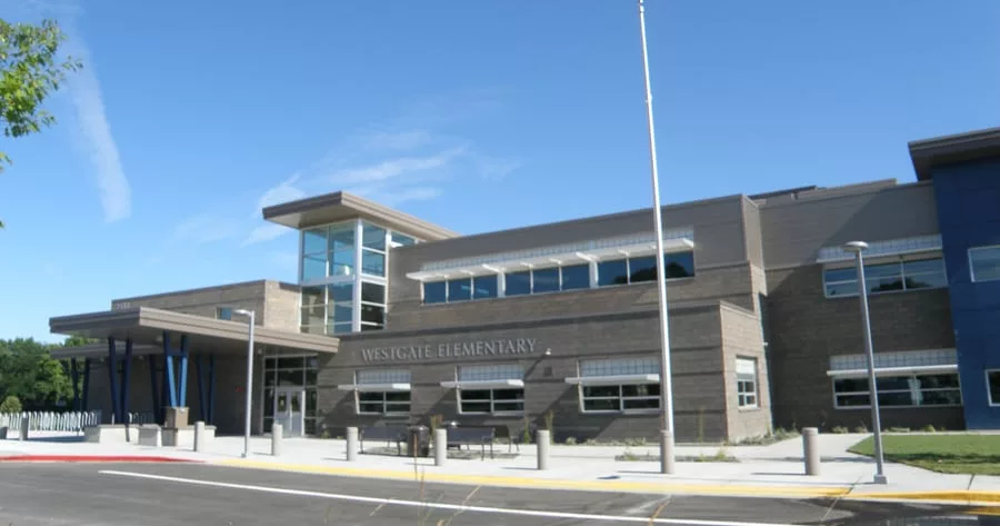 The new Westgate building replaces the original one built in 1952. The two-story, 60,500-square-foot school features 30 classrooms, a gymnasium, cafeteria, library, music room, computer lab, reading rooms and a playground.