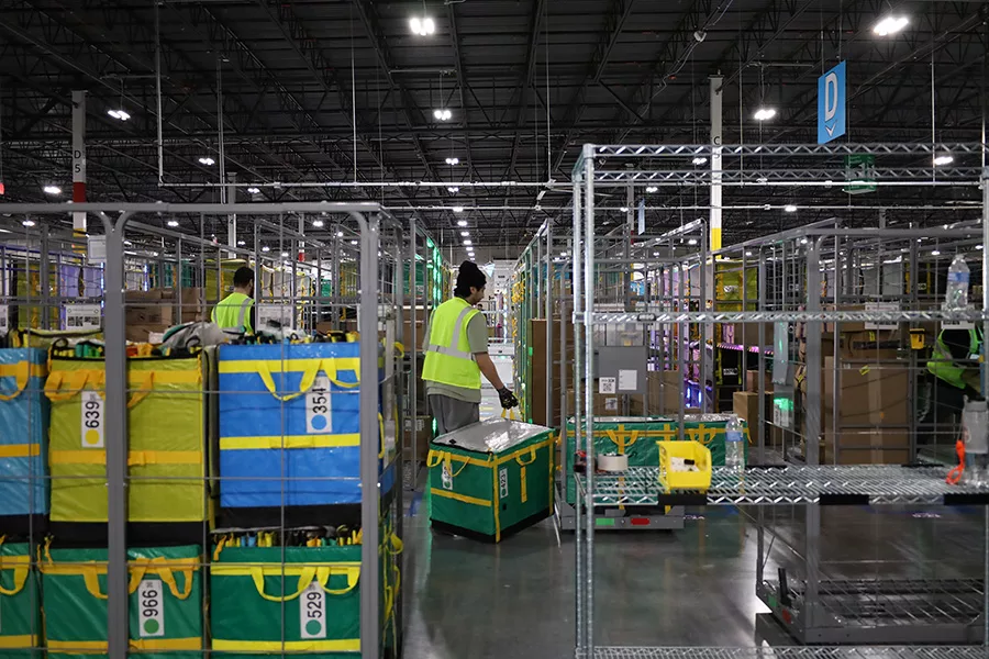 The warehouse is a last-mile facility, meaning that it’s the last stop in the Amazon delivery system before a package arrives at the customer’s doorstep – within two days or faster.