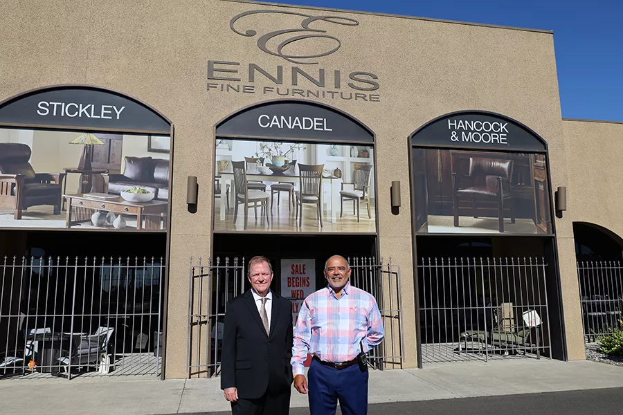 Ennis Fine Furniture is closing its Richland location after a final sale. Owner David Ennis, left, stands with René Vasquez, the store’s sales manager.