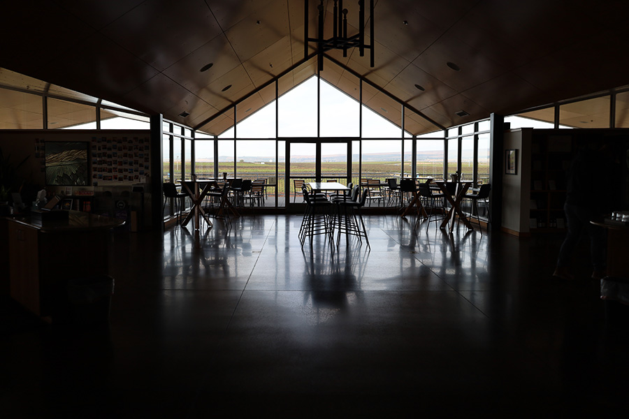 The tasting room at Kiona has sweeping views of vineyards and vistas.