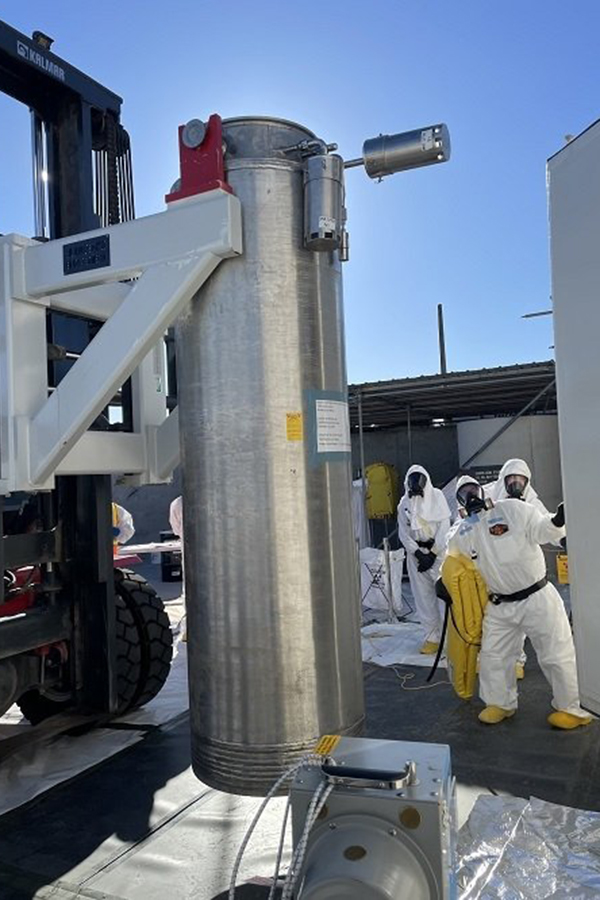 During a planned maintenance outage, workers changed out spent 27,000-pound filter columns in the Tank-Side Cesium Removal System.