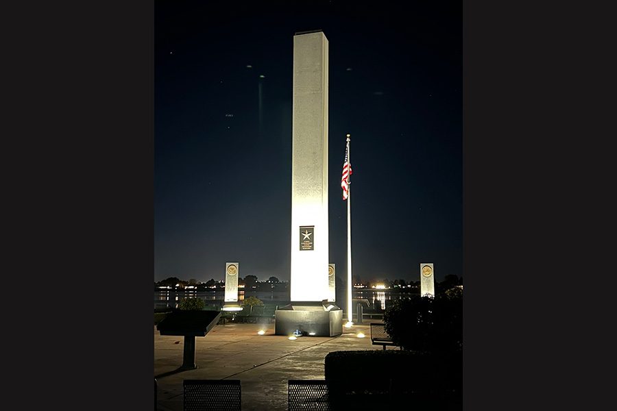Lights illuminate the Regional Veterans Memorial in Columbia Park along the Columbia River in Kennewick. Volunteers, local organizations and businesses contributed the funding and work needed to replace 15 of the memorial’s recessed lights in November 2024.